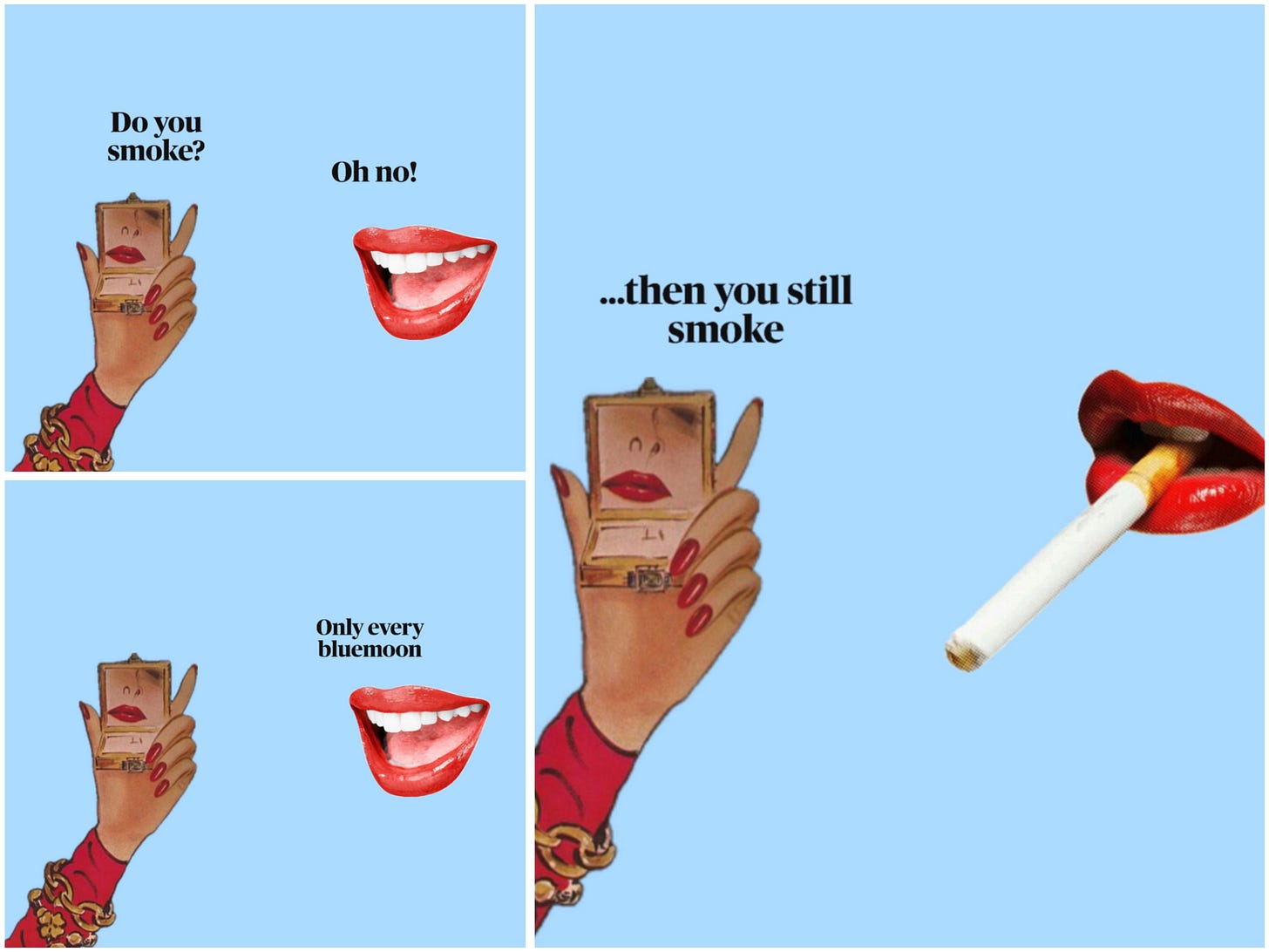 Just like they tried to refined smoking, that’s what my sister did when I asked if she’s still in contact with them family. She told me no, yet still responds to sparse messages. This semantic ambiguity to excuse infrequency reminds me how ambiguous her morality is too.
